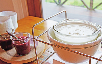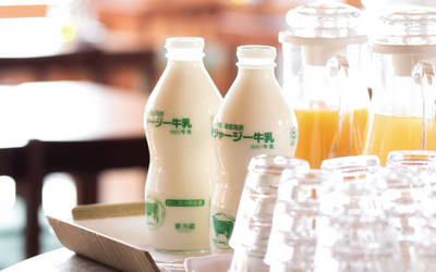 清泉寮の自家牧場で搾った有機ジャージー牛乳をお楽しみください。