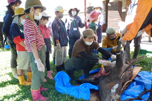 ハンター体験②【シカの解体をしてみよう♪】 シカの解体体験を予定しています。普段なかなか見ることのない、皮はぎから精肉までの流れを一緒にやってみましょう。 |