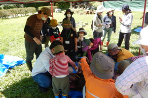 | 14:00 | 【自然体験&ハンター体験①】 森へ出かけましょう♪ 清里の森は、多くの生きものたちが生息しています。どんなところでどのように暮らしているのでしょうか。生きものたちの痕跡探検に行きましょう! そして、その生きものたちを獲るための道具「ワナ」も試してみましょう♪ |
