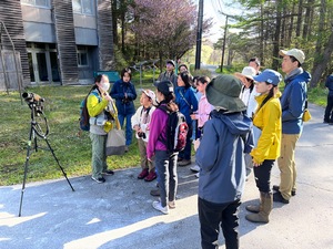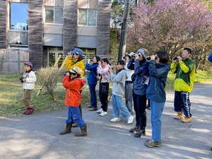 野鳥に会いに森へ出かけよう! 双眼鏡、望遠鏡を使って野鳥を観察します。 |