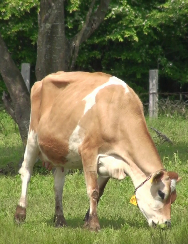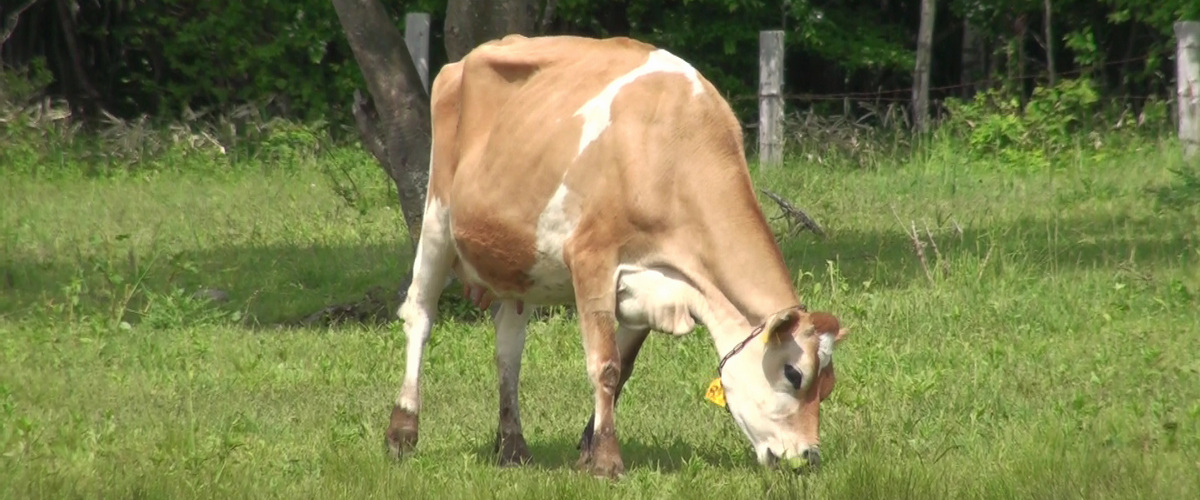 清泉寮のジャージー牛は新鮮な牧草を食べます。βカロテンを豊富に含んでいるので、牧草を食べて育つ牛からは薄淡い金色の「ゴールデンミルク」が絞られます。
