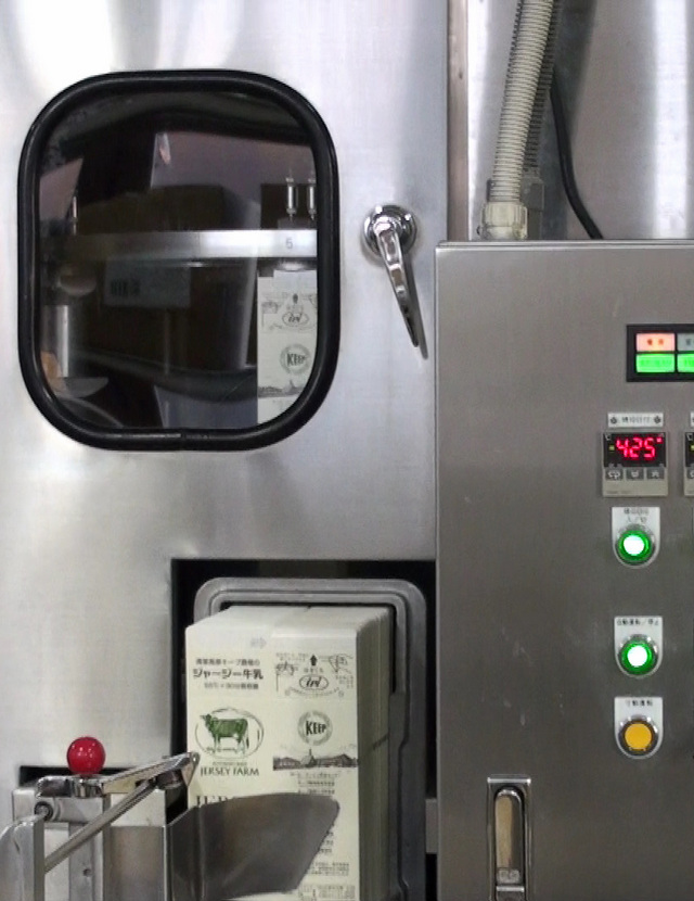 一度加熱、殺菌する必要があります。通常は130℃2秒の高温殺菌が一般的ですが、清泉寮有機ジャージー牛乳は、65℃30分の低温保持殺菌処理法を採用しています。この方法で殺菌すると生乳本来のすっきりした香りの味になり、牛乳が苦手な人でもおいしく飲むことができます。